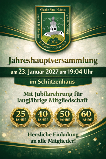 Sanstag, 23. Januar 2027 um 19:04 Uhr im Schützenhaus
